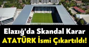 Yıllar boyunca ‘Elazığ Atatürk Stadyumu’ olarak hizmet veren stadyumun yenilenme çalışmalarının ardından stadyumun ismi ‘Elazığ Stadyumu’ olarak değiştirildi. Elazığ’da yenilenen ve yapımı tamamlanan stadyumdan ulu önder Mustaffa Kemal Atatürk’ün ismi çıkartıldı. Cumhuriyet’te yer alan habere göre, 1974’ten bu yana şehrin takımı Elazığspor’un maçlarına ev sahipliği yapan stat, yıllarca “Elazığ Atatürk …